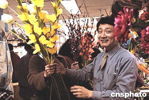 北京禮品工藝花卉市場(chǎng)在春節(jié)前夕生意異;鸨N售工藝花卉的攤主忙得樂不可支。中新社記者:鄒憲