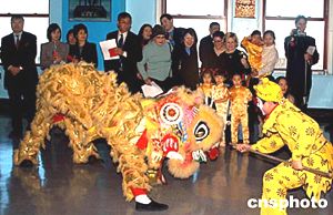 亞美商業(yè)發(fā)展中心和紐約市旅游局等合作二十日舉行紐約帝國大廈亮燈儀式,慶祝中國農(nóng)歷新春,華埠舞獅隊(duì)和華人京劇團(tuán)共同表演金猴戲獅,表現(xiàn)華人歡度新春的喜慶和吉祥。作者:趙海燕