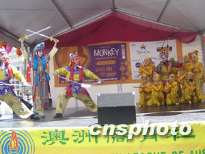澳洲僑青社24日在悉尼中國城德信街舉行盛大的新春聯(lián)歡會,數(shù)以萬計的華人華僑和各界人士出席了開幕儀式,并觀看了精彩的文藝節(jié)目。此次新春聯(lián)歡會一連兩日,由北京藝術(shù)團、澳洲僑青社、悉尼西區(qū)華人協(xié)會以及黃河合唱團的藝人獻演豐富多彩的歌舞和音樂節(jié)目,令悉尼各界人士耳目一新。中新社記者劉雨生攝