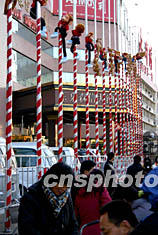 猴年春節(jié)期間,山東濟(jì)南的商家大打“猴子”牌,地處鬧市區(qū)的內(nèi)地與香港合資四星級酒樓玉泉森信大酒店,為招徠顧客,在店前一排金屬旗桿上點(diǎn)綴上十幾個(gè)憨態(tài)可掬的吉祥猴。作者:王魯平