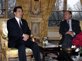 二十六日下午,希拉克和胡錦濤在法國總統(tǒng)府舉行小范圍會(huì)談