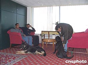 中國國家主席胡錦濤將于當?shù)貢r間二十九日下午抵達開羅,開始對埃及的國事訪問。當?shù)鼐揭辉缂磾y帶警犬進入胡主席將下榻的喜來登酒店巡視,以保安全。作者:齊彬