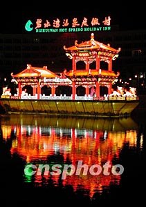 一元復(fù)始,大地回春,流溪兩岸彩燈萬盞賀元宵。在廣州從化碧水灣溫泉度假村舉行的大型“彩燈廟會(huì)”,匯集了“天下第一彩燈--自貢”之精華,精心制作大型水上彩燈。作者:鄧嘉樂