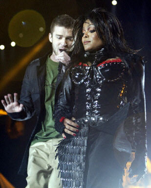 美國歌手珍妮-杰克遜與賈斯汀在美式足球超級杯大賽中場演出時公然露胸引發(fā)軒然大波,珍妮-杰克遜當(dāng)?shù)貢r間2日晚上對媒體發(fā)表道歉聲明。她表示,撕扯上衣的點(diǎn)子是總彩排結(jié)束后才臨時決定的,想不到正式上場時擦槍走火而讓原本預(yù)期的演出效果走樣。圖為珍妮·杰克遜與布蘭妮的前男友賈斯汀一起演唱。