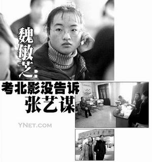 9點(diǎn)左右,魏敏芝與另外4名考生分成一組,一起走進(jìn)導(dǎo)演系面試考場(chǎng)。透過考場(chǎng)門上的玻璃,記者看到,在整個(gè)考試過程中,魏敏芝顯得還比較從容。但是,帶著微笑走出考場(chǎng)的她卻告訴記者說:“我覺得我有點(diǎn)緊張。”當(dāng)記者問起老師問了什么問題、她又是如何回答時(shí),19歲的她很頑皮很外交地回答:“老師說不能漏題!迸c其他考生相比,魏敏芝說并不因?yàn)樗倪^電影就具有優(yōu)勢(shì),相反壓力更大,“再說了,我沒必要與其他考生相比,我只要自己全面發(fā)揮!