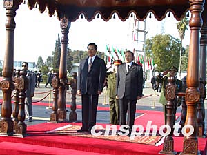 當(dāng)?shù)貢r(shí)間三日下午三時(shí)許,中國國家主席胡錦濤抵達(dá)阿爾及利亞首都阿爾及爾,開始對(duì)阿爾及利亞進(jìn)行為期兩天的國事訪問。阿爾及利亞總統(tǒng)布特弗利卡親到機(jī)場迎接,并舉行儀式,熱烈歡迎胡錦濤主席訪阿。阿爾及利亞是胡錦濤此次歐非四國之行的最后一站。中新社記者:齊彬 攝