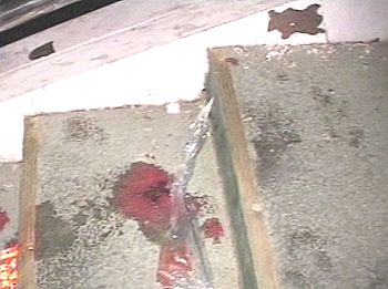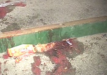 踩擠事故現(xiàn)場留下的血跡(電視截圖)