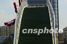 發(fā)生踩擠事故造成人員傷亡的北京密云云虹橋護攔被擠彎。中新社記者:宋吉河