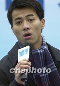 渣打馬拉松大使、香港歌星許志安二月七日在維多利亞公園舉行“渣打馬拉松2004打氣音樂會”上演唱。中新社記者:錢興強(qiáng)