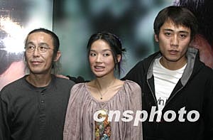 圖為影片主創(chuàng)人員:導(dǎo)演呂樂、女主角舒淇、男主角劉燁(從左至右)。