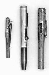 與鋼筆手槍相比,還有一種更小的毒氣槍。外形很像短的活動鉛筆,全長僅6厘米。此槍在制造過程中,子彈就壓在槍管內(nèi),彈頭都是經(jīng)過極毒溶液浸泡過的。人一旦被這種子彈擊中,必死無疑。(記者張立行)
