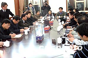 二月八日晚,北京市密云縣的領(lǐng)導(dǎo)就元宵節(jié)發(fā)生的特大踩擠事故舉行新聞媒體通氣會(huì),中共密云縣縣委書記夏強(qiáng)、縣長張文以及相關(guān)領(lǐng)導(dǎo)在通氣會(huì)上與記者進(jìn)行面對(duì)面的交流,就事發(fā)當(dāng)日以及善后處理工作等問題回答記者的提問。中新社記者:盛佳鵬