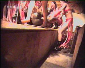 接下去的場(chǎng)面更加淫蕩。盡管如此,歌舞廳的老板仍不滿意,不時(shí)在臺(tái)下要求表演者做出極其下流的動(dòng)作,對(duì)觀眾進(jìn)行刺激和挑逗。