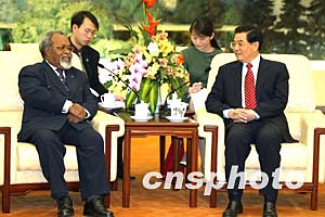 中新社北京二月十日電(記者齊彬)中國(guó)國(guó)家主席胡錦濤十日下午在會(huì)見巴布亞新幾內(nèi)亞總理邁克爾·索馬雷時(shí)表示,中國(guó)珍視同巴新的傳統(tǒng)友誼,贊賞巴新政府重視發(fā)展對(duì)華關(guān)系,堅(jiān)持一個(gè)中國(guó)政策。