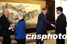 國務(wù)院副總理吳儀十二日在北京會見美國貿(mào)易代表佐利克。中新社記者:滿會喬