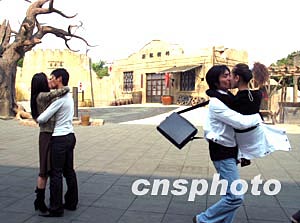 二月十四日情人節(jié),深圳歡樂谷舉行“唇唇欲動(dòng),KISS有禮,99朵玫瑰送愛人”接吻大賽活動(dòng),十多對(duì)情侶激情上場(chǎng)擁吻,歡度節(jié)日。作者:陳文