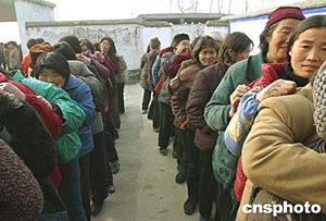 在河南省駐馬店市上蔡縣蘆崗鄉(xiāng)文樓村衛(wèi)生所,村民們排隊等候領取免費藥品。文樓村是一個艾滋病疫情高發(fā)村,三千二百多村民中有數(shù)百人染上愛滋病。現(xiàn)在村民凡出現(xiàn)頭疼、拉肚子的癥狀,都能在衛(wèi)生所領取免費藥物。作者:慎重