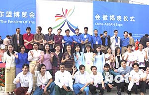 中新社南寧二月二十九日電 (記者劉萬強(qiáng))今天上午九時(shí)三十分,在南寧國際會展中心五千多名廣西首府各界代表和東盟國家?guī)资砥诖哪抗庵,中?#8212;東盟博覽會會徽“凝聚·綻放·繁榮”的神秘面紗終于被揭開,中國—東盟博覽會開始以嶄新、統(tǒng)一、鮮明的形象面向世界。