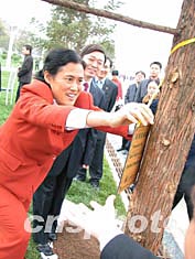 今日上午,一臉親和、恬美微笑的泰國(guó)公主詩(shī)琳通與宜昌市市長(zhǎng)郭有明一起,植樹(shù)湖北宜昌世界和平公園,親手為象征兩國(guó)人民間友誼的蔥郁的三峽杉培土澆水。(完)