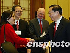 今天下午,唐家璇在人民大會堂會見了來京參加香港國泰航空公司復(fù)飛北京航線慶;顒拥南愀鄹鞔笊虝坝嘘P(guān)企業(yè)負(fù)責(zé)人。
