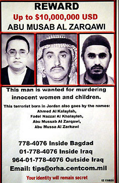 今年2月,駐伊美軍向公眾發(fā)布了一封截取的信件,這封信是由扎卡維親筆寫給“基地”領(lǐng)導(dǎo)人的,其中詳細(xì)記載了6月30日權(quán)力移交前所發(fā)動(dòng)襲擊的具體計(jì)劃。美國(guó)官員聲稱,扎卡維涉嫌參與并策劃了今年在伊拉克發(fā)生的多起自殺性爆炸事件。