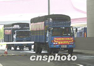 圖為裝載著禽類產(chǎn)品的運(yùn)輸車輛通過澳門關(guān)閘。