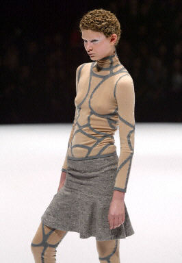 3月5日,在巴黎2004/2005秋冬時裝周上,模特展示設(shè)計(jì)師新款時尚秋冬女裝。