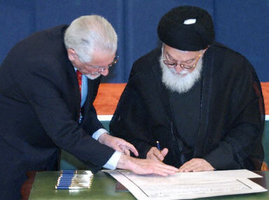 這個儀式原定上周五(5日)舉行,但伊拉克什葉派穆斯林最高精神領袖提出反對,儀式不得不臨時取消。就在代表們星期一(3月8日)匯聚在巴格達的會議中心參加簽字儀式之際,巴格達中部發(fā)生了一系列大爆炸。