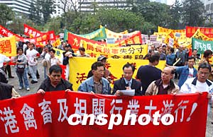 鑒于香港政府并沒有恢復(fù)輸入內(nèi)地活家禽的時(shí)間表,三月十日,香港活家禽批發(fā)商商會及相關(guān)行業(yè)舉行游行,要求政府盡快恢復(fù)從內(nèi)地輸入活雞。作者:潘索菲