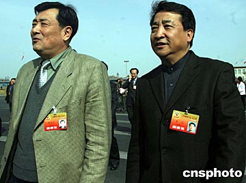 三月十二日下午,全國政協(xié)十屆二次會議舉行閉幕會,全國政協(xié)委員、著名相聲演員姜昆(右)等委員出席。中新社記者:張勤