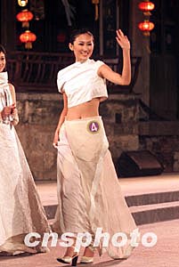 三月十五日晚,“古鎮(zhèn)西塘”2004年國際旅游小姐大賽中國區(qū)總決賽在浙江古鎮(zhèn)西塘新搭建的水上舞臺落幕,奪得亞軍的四號選手王雅瓊獲得“中國旅游年度美皇后”稱號,她將代表中國參加四月在德國慕尼黑舉行的世界皇后大賽。中新社記者:盛佳鵬
