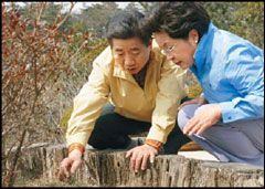 同時,彈劾案表決后第9天的21日,青瓦臺秘書室首次公開了總統(tǒng)在官邸拍攝的照片。這里包括盧武鉉總統(tǒng)身穿韓服閱讀文件或眺望窗外(上圖),身著夾克裝和夫人權(quán)良淑女士散布等身影。這是青瓦臺首席宣傳室認(rèn)為“總統(tǒng)停職”一周后有必要向外界公開總統(tǒng)在閑暇中進行種種構(gòu)想。