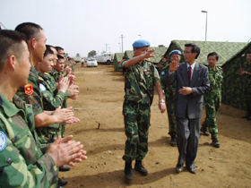 歡迎儀式結(jié)束后,林大使在周紹瑞參謀長及中國維和部隊各分隊領(lǐng)導(dǎo)的陪同下,視察了中國維和部隊營地,并看望了各級指戰(zhàn)員。