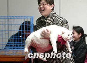 2004年3月21日是世界名貓盛會(huì)亮相上海最后一天,當(dāng)天舉行了許多單體項(xiàng)目的比賽,近120多只來自中國(guó)各地的名貓角逐“中國(guó)貓王”,最終新一屆的“貓王”頭銜被一只金吉拉摘走。中新社傳真 楊磊攝