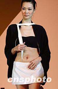 “2004香港國際春季時裝材料展”三月二十三日在香港會展中心開幕,參展設(shè)計師在展會上推出選用不同面料設(shè)計的時裝,簡潔、典雅。中新社傳真 錢興強 攝