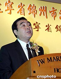 遼寧省錦州市汽車行業(yè)發(fā)展推介會,19日在香港舉行.圖為錦州市人民政府副市長劉偉在推介會上致詞。作者:史一博