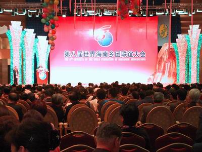 來自新加坡、泰國、中國香港、中國澳門、馬來西亞、文萊、中國臺北、美國南加州、澳大利亞新州、法國、印尼以及海南等十二個國家和地區(qū)的海南鄉(xiāng)團代表,在上午的全體會上發(fā)言。