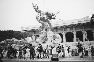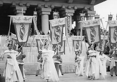 伴著合唱的變奏,“云門大卷”、“百獸率舞”、“中華鼓魂”聚集在大殿前,1000只鴿子飛向藍天,一條象征黃帝精神的60米長的巨龍從大殿內(nèi)“飄逸”而出,在舞臺上空盤旋翻飛,隨后,黃帝“馭龍飛天”而去……(本報陜西黃陵3月29日專電)
