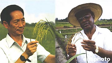 被稱為中國(guó)“雜交水稻之父”的袁隆平教授和來自塞拉利昂的瓊斯博士因在培育高產(chǎn)水稻方面的杰出貢獻(xiàn),29日在美國(guó)首都華盛頓被授予二00四年度“世界糧食獎(jiǎng)”,兩人分享二十五萬(wàn)美元的獎(jiǎng)金。中新社圖