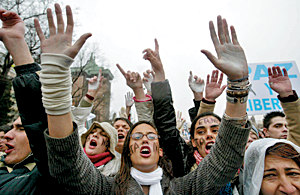 3月12日晚,西班牙4000萬人口中有1140萬人走上全國(guó)8000多個(gè)城市的街頭,抗議馬德里發(fā)生的系列恐怖爆炸事件。而歐洲的一些國(guó)家如法國(guó)、德國(guó)均降半旗以示哀悼。這讓人想起了9·11后法國(guó)媒體的大字標(biāo)題“我們都是美國(guó)人!”同樣,全歐洲也在高呼“我們都是西班牙人!”。