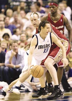 中新網(wǎng)4月1日電 諾維茨基和納什昨天雙雙發(fā)威,率領(lǐng)達(dá)拉斯小牛隊(duì)以126:109頂翻了克里夫蘭騎士隊(duì),也為本隊(duì)拿到了一張季后賽入場券。沒有了埃弗森的費(fèi)城76人隊(duì)繼續(xù)“當(dāng)家作主”,以95:71結(jié)束了金州勇士隊(duì)的7連勝狂奔。