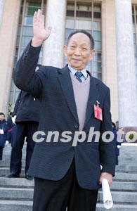 瘦小的身子,高高的顴骨,背微駝,小平頭,古銅色的臉龐爬上了些許老人斑,歲月霜刀刻在寬闊的額頭上,這就是記者第一眼看到的中國(guó)水稻專家袁隆平。