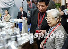 已故中共中央總書記胡耀邦的夫人李昭,四月五日來到北京國際展覽中心,觀看于當日開始的中國國際服裝服飾博覽會女裝展。中新社記者:毛建軍