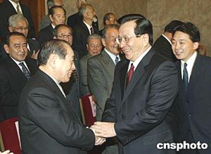 曾慶紅今天下午在人民大會(huì)堂會(huì)見了由日中友協(xié)名譽(yù)顧問、自民黨前干事長(zhǎng)野中廣務(wù)率領(lǐng)的社團(tuán)法人日中友好協(xié)會(huì)全國(guó)代表訪華團(tuán)。他贊揚(yáng)野中廣務(wù)以及日中友協(xié)的朋友們?yōu)榘l(fā)展中日友好關(guān)系做出了寶貴貢獻(xiàn),并對(duì)日本相撲協(xié)會(huì)理事長(zhǎng)北之湖敏滿將率日本大相撲來華公演表示歡迎。