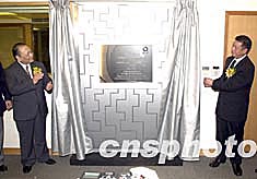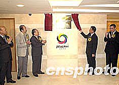 圖為澳門特區(qū)行政長官何厚鏵為「第四屆東亞運(yùn)動會澳門組委會總部」新大樓揭牌。