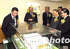 圖為澳門特區(qū)行政長官何厚鏵、中央駐澳門特區(qū)聯(lián)絡(luò)辦主任白志健等在新總部參觀第四屆東亞運(yùn)動會場館模型。