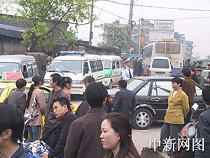 在通往化工廠的路上,不斷有公安、消防、救護(hù)、武警等單位的車(chē)輛飛馳而過(guò)。當(dāng)?shù)卣組織了一批營(yíng)運(yùn)車(chē)輛,免費(fèi)接送需要撤離的居民。