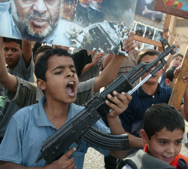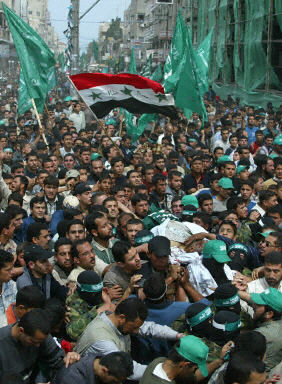 3月22日,近萬(wàn)名哈馬斯的支持者和巴民眾涌上加沙街頭,為遭以軍暗殺的“哈馬斯”精神領(lǐng)袖亞辛舉行葬禮,更抗議以色列不光彩的暗殺。28天后,巴勒斯坦各武裝派別的支持者們又來(lái)給蘭提斯送行。當(dāng)他們擁著蘭提斯的尸體,鳴著槍從加沙師法醫(yī)院走向阿爾納斯郊區(qū),他們心中充斥的是憂傷?是憤怒?是恐懼?還是茫然?