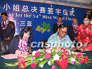 海南三亞市政府和世界小姐組織機(jī)構(gòu)四月十九日在?谂e行第五十四屆世界小姐總決賽的簽約儀式,世界三大選美賽事之一的世界小姐總決賽(miss world)今年十二月將再度在三亞舉辦,三亞將成為世界上第二個(gè)連續(xù)舉辦世姐總決賽的城市。作者:王辛莉