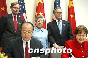 中國國務(wù)院副總理吳儀最后致辭。她指出,今天四個(gè)半小時(shí)的會(huì)談是在非常友好坦誠的氣氛中進(jìn)行的。會(huì)議取得圓滿成功。她強(qiáng)調(diào),只要中美兩國從大局出發(fā),立足長遠(yuǎn)利益,在平等協(xié)商的基礎(chǔ)上互讓互利,經(jīng)貿(mào)領(lǐng)域遇到的一切摩擦都可以得到解決。她特別指出,不能把單純的經(jīng)貿(mào)問題政治化,此次聯(lián)委會(huì)的成功為今后雙方在經(jīng)貿(mào)領(lǐng)域的合作構(gòu)建了很好的平臺。她表示,中方愿盡最大的努力,在發(fā)展中求得雙邊貿(mào)易的平衡。